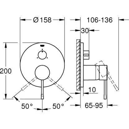 Mit dem Grohe QuickFix Schnellbefestigungssystem sparen Sie Arbeitszeit bei der Installation. Durch die Verwendung von wenigen Einzelteilen wird die Montagedauer um bis zu 50 % reduziert. Das Regler-Set ist für die Installation mit dem Grohe Rapido SmartBox Universal-Unterputz-Set geeignet, das separat erhältlich ist.