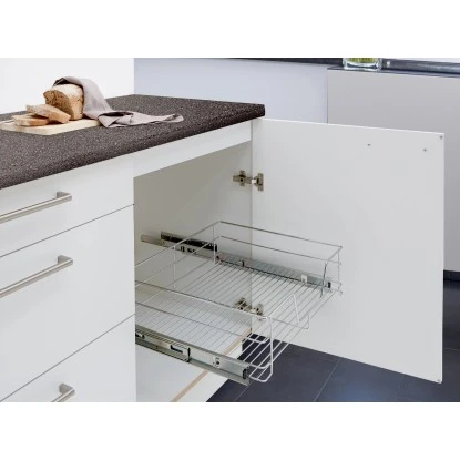 Die OBI Teleskopschublade eignet sich ideal zum Nachrüsten von Schränken mit einer Breite von 50 cm. Sie ist besonders praktisch für den Einbau in Küchenschränken, da sie mehr Stauraum und Ordnung schafft. Ihre Tragkraft beträgt max. 10 kg. Im Lieferumfang ist das Montagematerial enthalten.